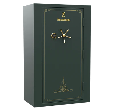 Browning has released the HTR33 Hunter Series Gun Safe for the summer of 2022. It has many great features available all at an affordable price. Since it is a standard size at 60″ tall by 29.50″ wide by 24.50″ deep, it is designed to hold 33 total long guns (26 inside + 7 on the door). It also has some room at the top of the safe for adjustable shelves to store other items, valuables, and important paperwork.