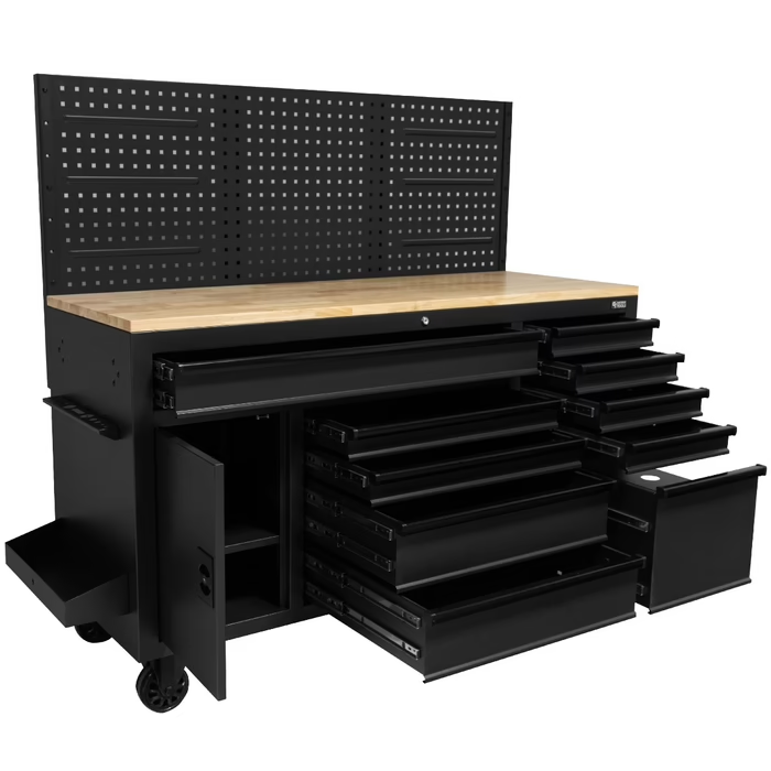 توفر المقابض السوداء قبضة آمنة ومظهرًا احترافيًا أنيقًا، مما يجعل هذه الطاولة مثالية للورش، مرافق الصيانة، الكراجات، والبيئات الصناعية حيث تعتبر الإنتاجية وسهولة التنقل أمرًا أساسيًا.