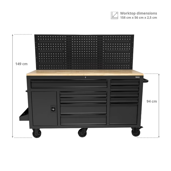 George Tools mobile workbench with black handles 157 cm black
